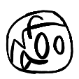 His eyes also appear to be completely white ovals with no pupils. His mouth also goes out of his head, wow! (This is solely for art-style purposes and isn't completely canon.)